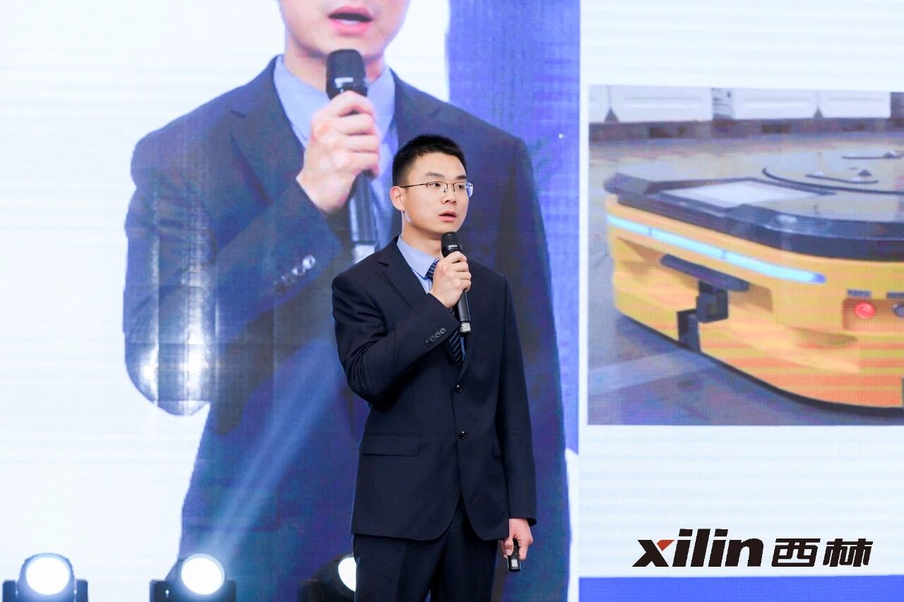 「智能物流開發(fā)部部長(zhǎng)田豐作AGV產(chǎn)品展示」